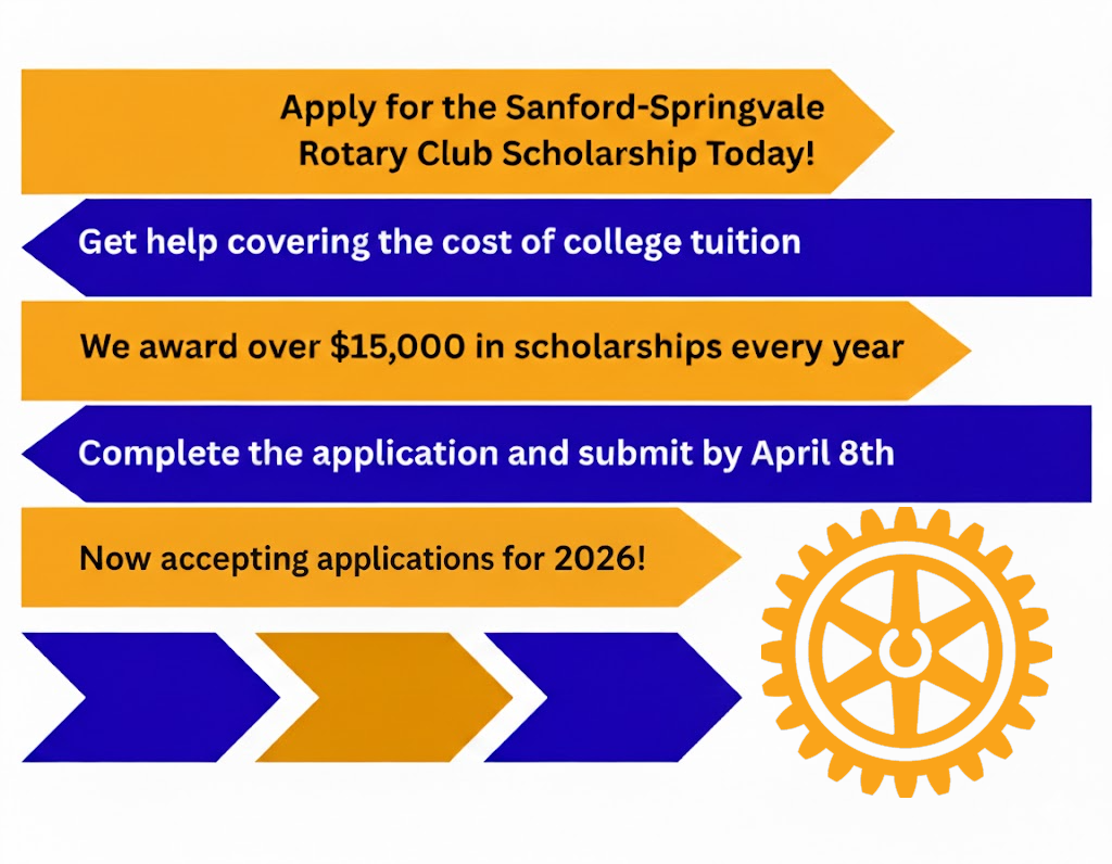 The Sanford-Springvale Rotary Club meets every Thursday morning at 7:30 AM at the Sanford Community Adult Education building, 669 Main Street, Sanford. Community members interested in joining or learning more about Rotary are always welcome.